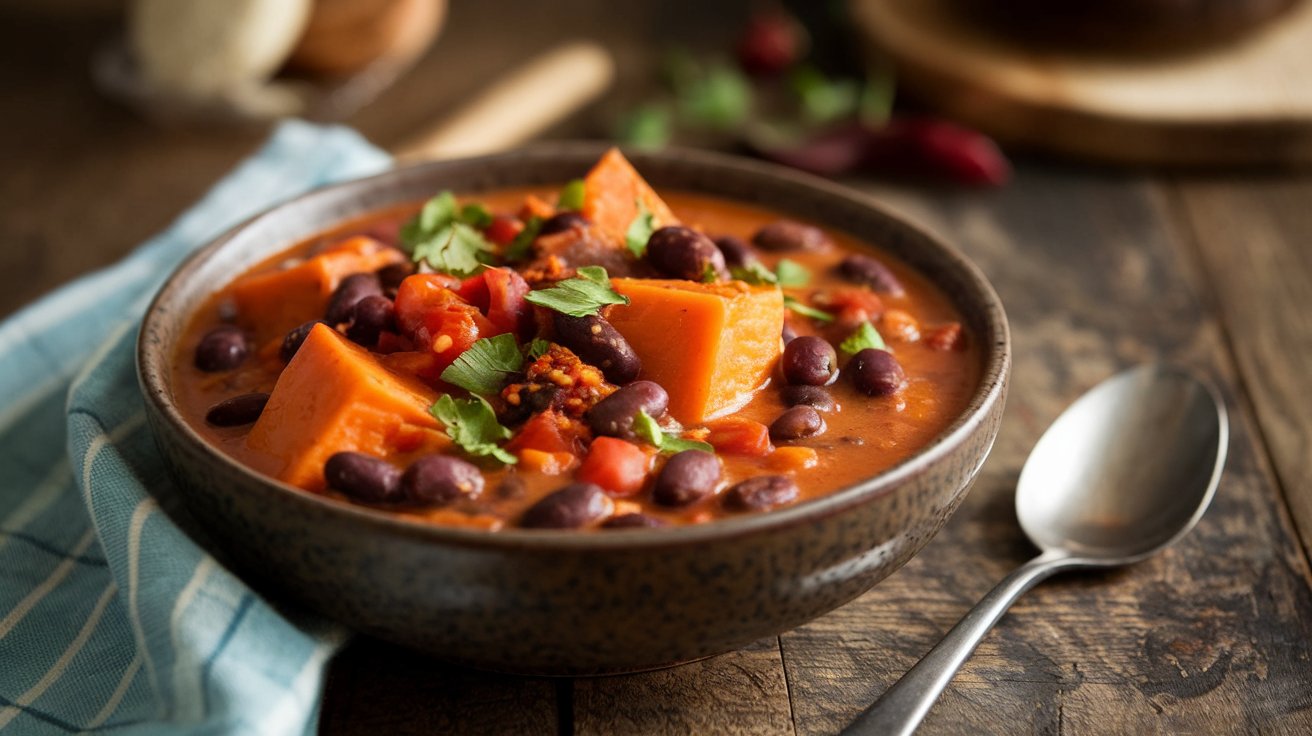 This vegan stew is a comforting mix of tender sweet potatoes, black beans, and juicy tomatoes, seasoned with cumin and chili powder for a warming kick. Each spoonful is a delightful experience, bringing together the natural sweetness of the potatoes and the earthiness of the black beans.
